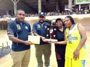 The 2017 National Souths Basketball League tournament was successfully completed, thanks to a huge K150,000 sponsorship from Petroleum Resources Kutubu. Women’s Division Back-to-Back Champions Kutubu Lakers with their awards after