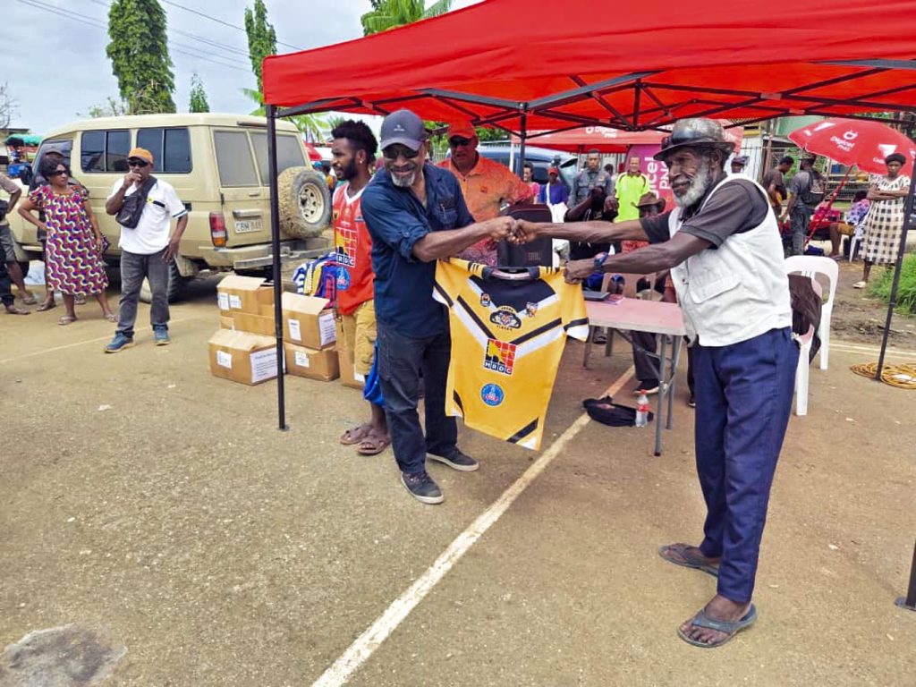 This included 10 sets of rugby league jerseys each were presented to Kerema Rugby League for men and women while 8 sets of uniforms were presented to Kerema Basketball.