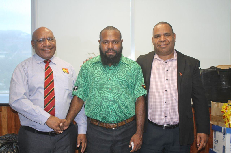 Western Province Governor Taboi Awai Yoto (c) with MRDC’s Imbi Tagune (left) and Steven Evekone (right).