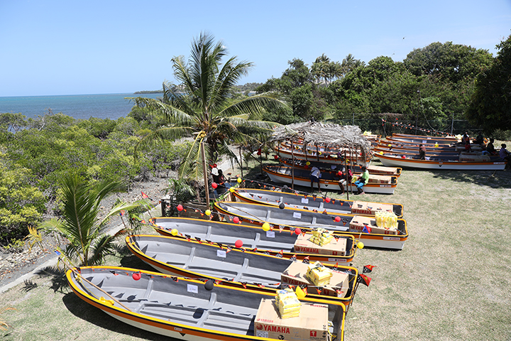 Twenty new dingies awaiting presentation at the Koke Hanua Resort in Boera Village.